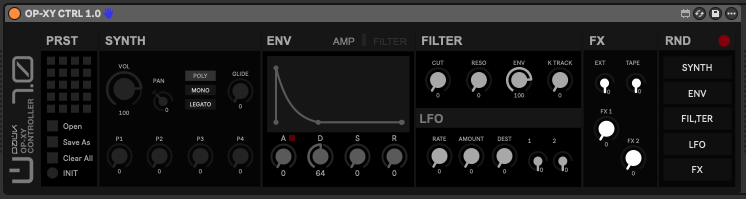 OP-XY CTLR 1.0 is a midi max for live device for Ableton Live to control the Teenage Engineering OP-XY.